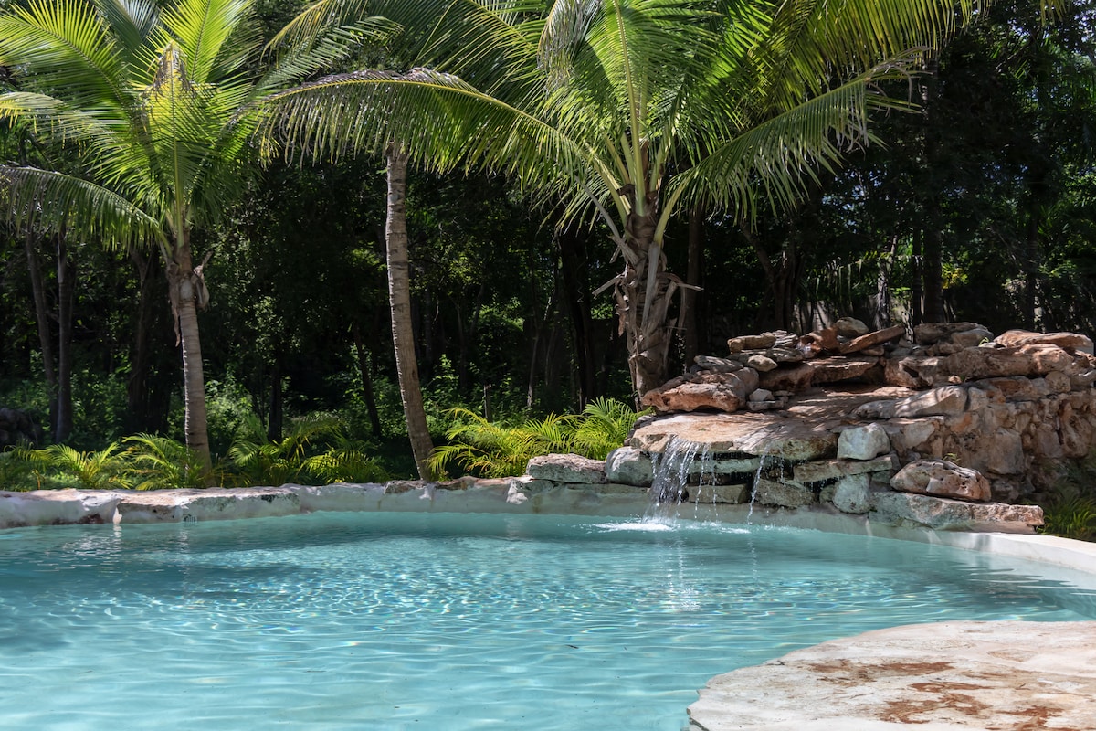 Escápate a una casa encantadora en un rancho privado, a solo 8 min de Valladolid. Disfruta de una alberca rodeada de naturaleza, cocina equipada (¡ipuedes agendar una clase de cocina), terrazas, fogata y decoración artesanal diseñada por una chef. Vive cabalgatas, cenotes cercanos, el mercado local y zonas arqueológicas. Ideal para quienes buscan autenticidad, confort y una experiencia gastronómica y cultural inolvidable. 2 hermosas recamaras con baño, wifi y todo lo que necesites.