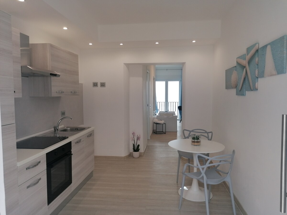 Apartamento nuevo a solo 150 metros del curso peatonal de Peschici, con una superficie de 48 metros cuadrados y un hermoso balcón con vistas al mar y un vistazo a la bahía. Brillante y amueblado con buen gusto con todas las comodidades, aire acondicionado, red wifi, TV de 50 pulgadas, cocina equipada con nevera, congelador, horno, máquina de café expreso, caldera eléctrica y tostadora, comedor. No hay escasez de jacuzzi (disponible por una tarifa adicional) Ideal para unas vacaciones relajantes y románticas en la playa.