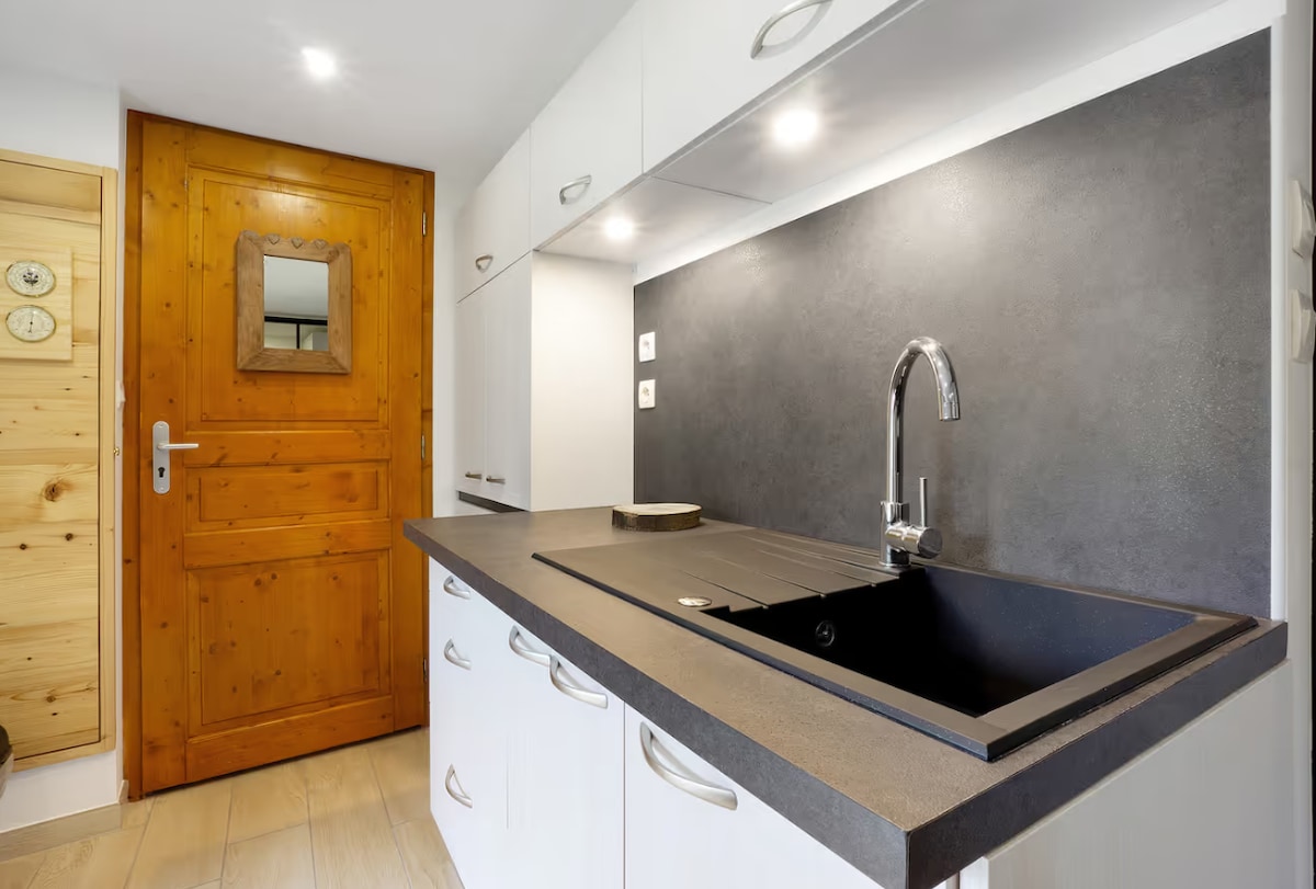 El apartamento en ambiente de chalet con materiales de calidad (madera, piedra). Está compuesto por una habitación grande con cocina abierta equipada, sofá cama doble, TV y limpieza. ⁃ Dormitorio pequeño con armario grande y litera. ⁃ Baño y aseo separados. Apartamento de 28 metros cuadrados situado a 50 metros del centro y del frente de nieve. Tiene balcón con exposición sur y vistas a la montaña. El bloque de apartamentos es tranquilo y seguro. Hay taquilla para esquís disponible.