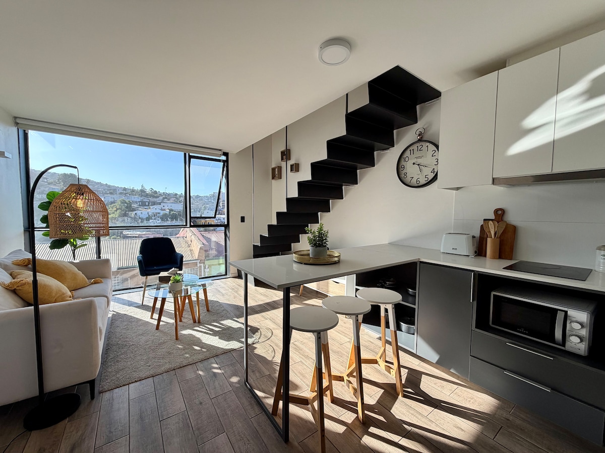 Vive Valparaíso como nunca antes Descansa en un espacio moderno y acogedor, creado para que encuentres la calma que necesitas en pleno corazón de la ciudad. Disfruta de la historia porteña, sus cerros llenos de vida y la vista al mar. WiFi de alta velocidad (500 Mbps), ideal para teletrabajo. Terraza panorámica con vistas al cerro y al mar. Estacionamiento privado. Condominio con seguridad 24/7. Excelente conectividad para moverte entre Valparaíso, Viña del Mar y alrrededores.