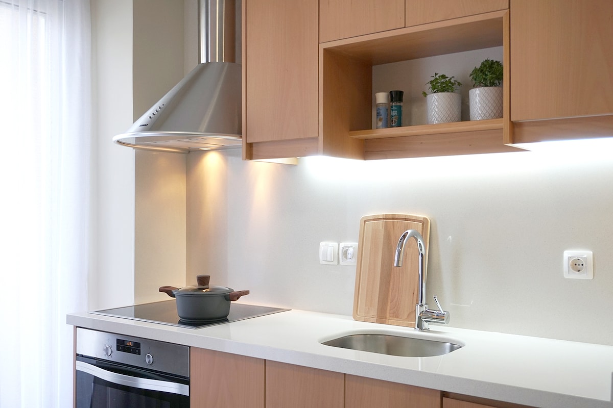 Es un apartamento de 85 metros cuadrados con vistas notables y diseño moderno en un entorno donde el único ruido son los pájaros del bosque. Queremos informarte de que nuestro apartamento NO TIENE AIRE ACONDICIONADO ni electrodomésticos de bajo consumo. Hay aparcamiento a 10 metros de distancia. A 15 minutos a pie se encuentra el supermercado Lidl y hay un minimercado a 300 metros de distancia. Además, el famoso Caffe Koukouvaya está a 10 minutos a pie.