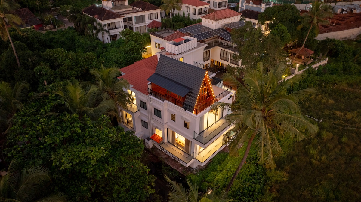 Ubicada en Cavelossim, esta es una villa de aire acondicionado de 2 BHK. También contamos con piscina. La habitación tiene aire acondicionado con camas cómodas en ambas habitaciones. Hay una cocina para hacer té o café y una nevera para guardar tus bebidas. Para tu entretenimiento, tenemos un televisor en la villa. El baño viene con agua corriente fría o caliente. Si tienes alguna duda, envíame un mensaje a través del botón "Contacta al anfitrión" antes de reservar.