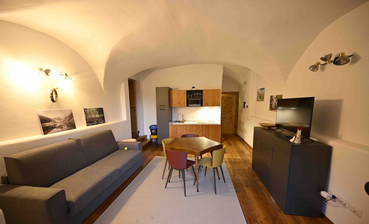 Uno de nuestros cinco apartamentos delicadamente renovados ubicados en el segundo piso de una encantadora y pintoresca casa de campo. Es uno de los edificios más antiguos de un pequeño y acogedor pueblo en el Valle d'Isarco, en el norte de Italia. Nos encontramos justo en el centro del soleado Tirol del Sur, en la cima de una colina a la entrada de los valles de Gardena y Funes. Cerca de las montañas Dolomitas, pero no muy lejos de las populares ciudades de Bolzano y Bressanone, es un punto de partida ideal para explorar la región.