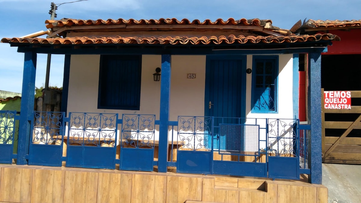 Casa Serra Azul chalé 1 Este lugar único e incrível oferece tranquilidade para quem deseja paz e vista para a Serra da Canastra, com um lindo pôr do sol. A casa oferece 2 quartos (1⁰ com 1 cama casal e 1 cama solteiro) 2⁰ com 1 cama casal) A casa acomoda 5 pessoas Cozinha completa. Sala Banheiro Banheira vintage para relaxar ao ar livre. Com um belo poço para se banhar em aguas límpidas ao fundo da casa ( acesso somente para nossos hóspedes) .