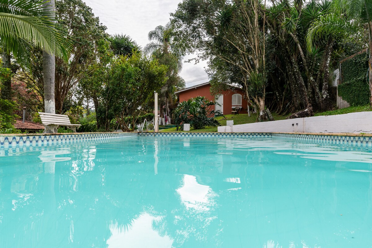 @amarelacravo&canela Es tranquilo. A solo 45 minutos de São Paulo, tiene una hermosa piscina, barbacoa, hamacas, ven a relajarte con familiares y amigos en este pequeño rincón especial, nuestro diferencial son los horarios de entrada y salida, dejando al huésped muy cómodo para planificar y aprovechar al máximo su estancia. Ley del silencio de 9 p. m. a 10 a. m. 🤫 No se permiten fiestas ni eventos nocturnos. A 15 minutos del parque Animalia. A 20 minutos de Thermas da Mata.