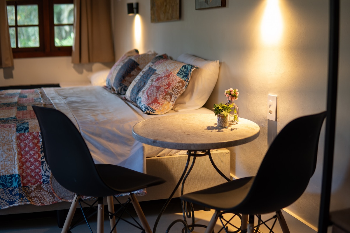 Flat 5- Nosso flat foi cuidadosamente planejado para oferecer conforto e charme. Temos Smart TV 50”, Wi-Fi, e cozinha equipada para pequenas refeições. cama king, cama solteiro e armário, e o banheiro, da vista para um charmoso jardim interno. Em um sítio urbano cercado por natureza, a 500 m do Lago de Javary, com garagem, lençóis e toalhas incluídos. Ideal para relaxar e aproveitar a cidade.