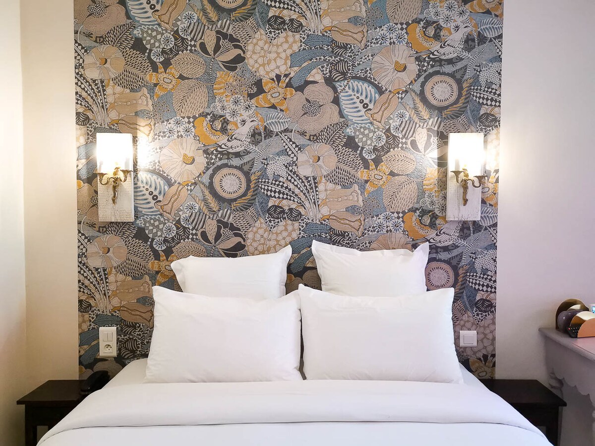 Notre boutique hôtel de charme est situé à 250m du centre ville. Cette chambre privée de 14m² dispose d'une douche et d'un lit queen size qualité 4* neuf. Le parking (sous réserve de disponibilité) et le wifi sont inclus. La chambre est climatisée et dispose d'une TV écran plat. Les petits déjeuners buffet peuvent vous être proposé en supplément sur demande. Nouveauté 2021 : retrouvez notre food truck Raymond sur le parking !