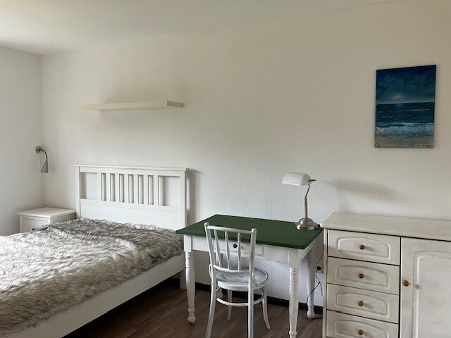 Este elegante apartamento ofrece una combinación ideal de comodidad y ubicación central. En solo 15 minutos a pie se puede llegar al centro de la ciudad, una parada de tren está a 2 minutos. El estacionamiento privado forma parte directamente de la propiedad. Un lugar de trabajo fijo con Internet rápido permite un trabajo productivo. La cocina está totalmente equipada, la cama de 1,40 m con somier y la televisión inteligente (Netflix, DAZN, YouTube) proporcionan relajación. Se incluyen elementos básicos como sábanas.