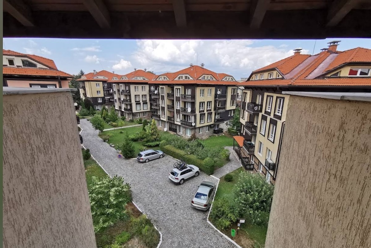 Apartamento con una vista increíble en Borovets Gardens, ideal para experiencias inolvidables en la montaña en Borovets. Cómoda estancia cerca del teleférico. Totalmente equipado con todos los servicios: Dormitorio con un colchón superior para una noche de sueño completo Sofá cama ancho Esquina con chimenea con fuego vivo. Cuarto de baño con zona de ducha Internet + TV Cocina: nevera, horno, estufa, campana extractora, hervidor eléctrico, tostadora y cafetera. Terraza con vistas Aparcamiento gratuito Registro de entrada automático fácil para un alojamiento cómodo