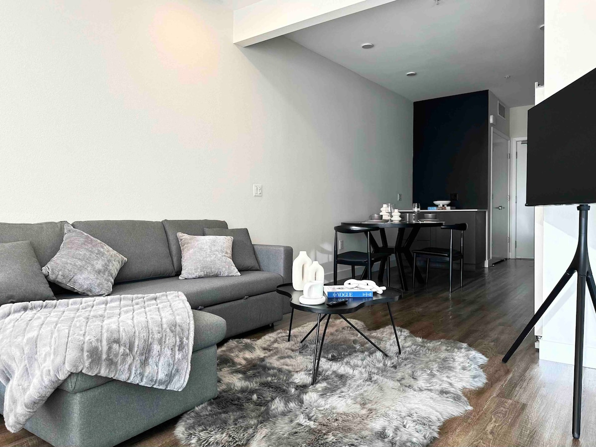 Relájate después de un día ajetreado con tu propia sala de estar privada estilo cine. Está equipado con un proyector de cine 4K de pared a pared, un cómodo sillón reclinable y un sofá para ver películas, tus juegos favoritos o televisión en vivo. Toda la casa está equipada con la última tecnología, como cargador inalámbrico, radio bluetooth y un altavoz inteligente. Este bungalow se encuentra en una zona histórica, accesible a través de un callejón trasero privado y viene con UNA plaza de aparcamiento dedicada y cerrada, COCINA COMPLETA con lavavajillas.