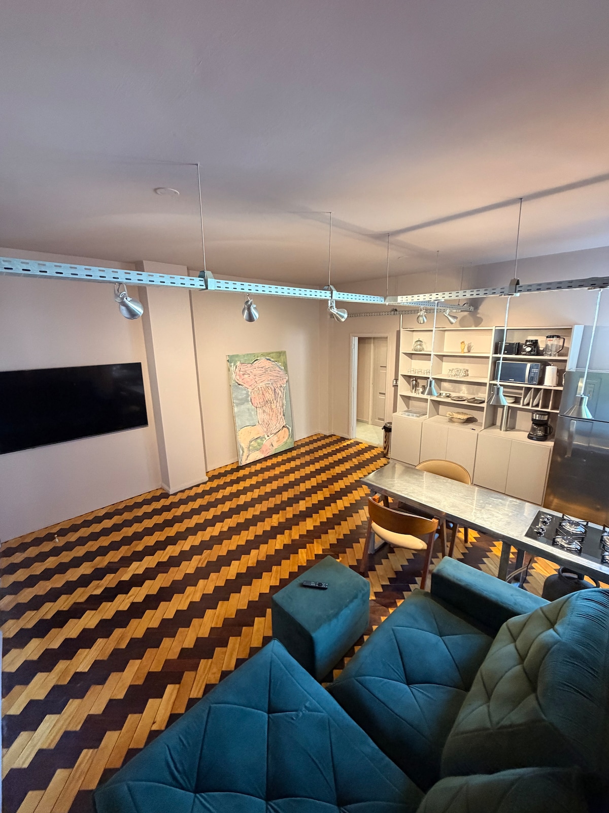 1 dormitorio, 1 baño, sala de estar grande y cocina abierta. Piso de madera en espiga remodelado. Baño renovado, azulejos de porcelana de alta gama y una buena ducha eléctrica. Lavadora y secadora. Aire acondicionado y ventilador de techo en el dormitorio, un juego de sábanas de cama y toallas de baño. Cocina equipada con electrodomésticos, vajilla básica y utensilios de cocina. Con diseño de iluminación. TV de 65 pulgadas. Internet wifi. Estacionamiento de pago a pocos metros del vestíbulo abierto las 24 horas.