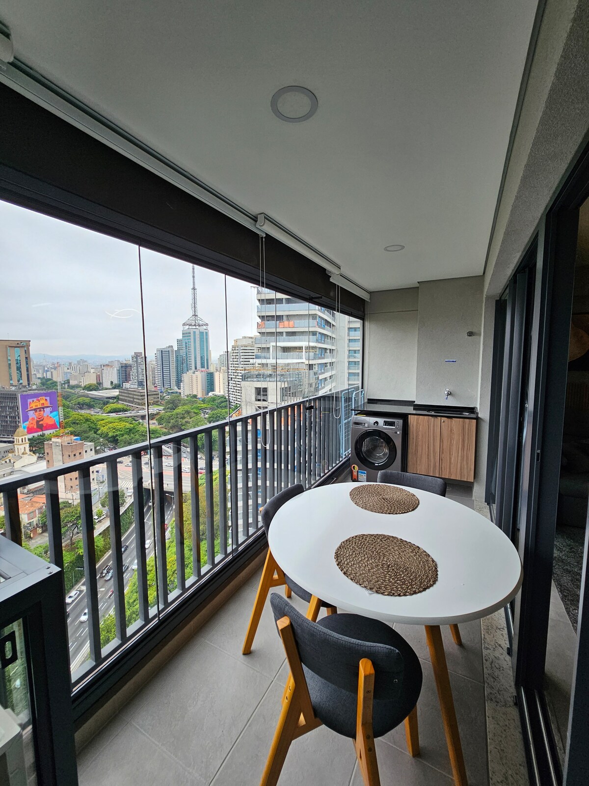 Elegante apartamento de 50 m² ubicado en Bela Vista, tiene portero las 24 horas. 2 dormitorios (solo 1 con aire acondicionado y cama tamaño queen, el segundo es bastante pequeño y se puede utilizar como oficina, con un sofá cama doble) y 1 baño. Con vistas increíbles desde todas las ventanas, es un lugar ideal para trabajar y relajarse. El jet-tube privado en el balcón es un lugar fantástico para disfrutar de las vistas de la ciudad. Ideal para parejas, profesionales o familias pequeñas que buscan comodidad, conveniencia y una de las mejores vistas de la ciudad.