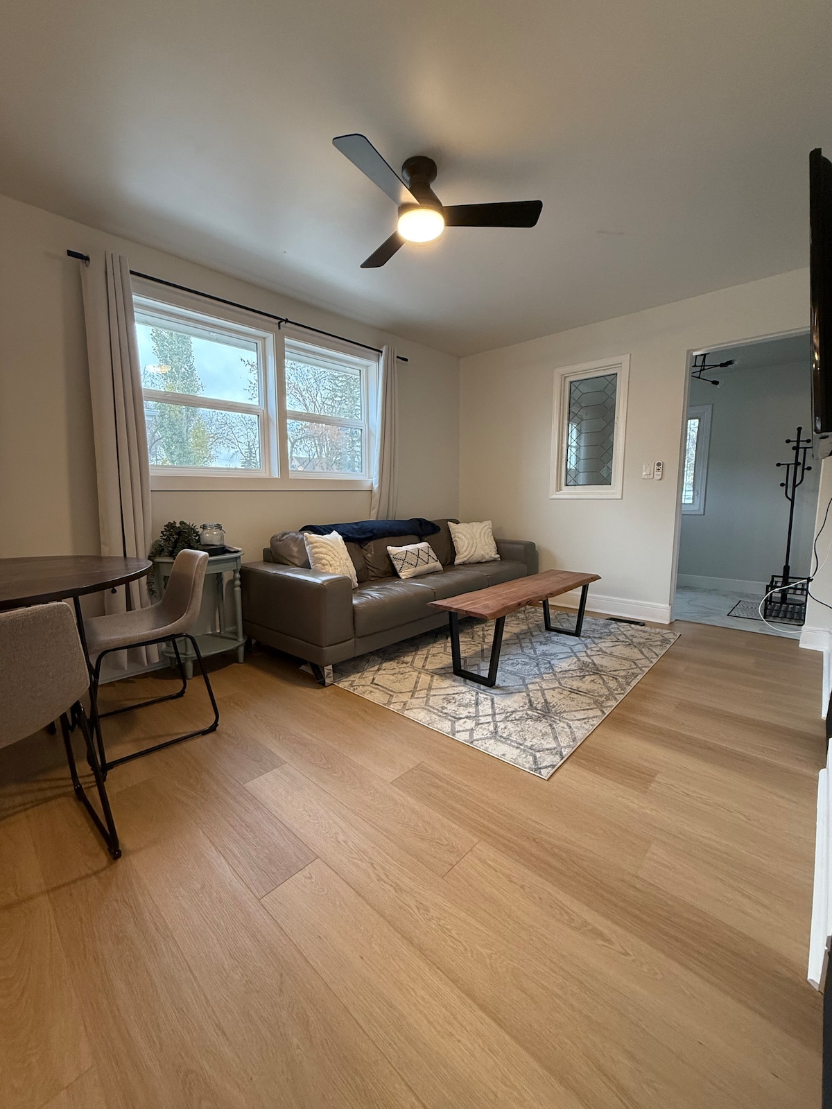 Bienvenido a The Loft – Urban Suites, un loft recién renovado ubicado en el corazón del centro de Lloydminster. Nuestra ubicación ofrece fácil acceso a las principales atracciones, restaurantes y lugares de interés locales de la ciudad. Si estás buscando un lugar único y conveniente para alojarte en Lloydminster, lo has encontrado. La suite cuenta con un amplio comedor, una cómoda sala de estar, dos acogedoras habitaciones y lavandería. Para tu entretenimiento, hay dos televisores: uno en la sala de estar y otro en uno de los dormitorios.