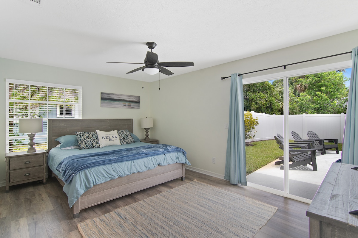 «Bungalow de sándalo» - Piscina climatizada y jacuzzi. - Al este de la A1A, a menos de 1 minuto a pie de una playa privada que admite perros en una carretera privada. - Cargador de vehículos eléctricos de 50 amperios, 240 V, nivel 2 para Tesla/vehículos eléctricos. - Internet wifi rápido de 800 Mbps. - Estación de trabajo en el área de oficina. - Comedor al aire libre. - Columpios. - Sillas de playa, sombrilla, tablas de boogie. - Guitarra y piano - Barbacoa de gas al aire libre - Ducha climatizada al aire libre - Hoguera - Sonos