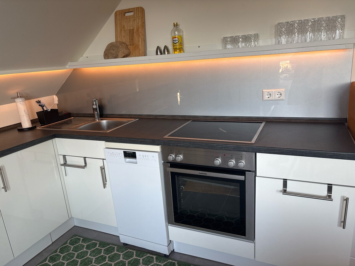 El apartamento de vacaciones se encuentra en una casa de nueva construcción de 2017 con acceso independiente al 1. piso. Es posible una estancia sin contacto con el registro de entrada a través de la caja de llaves. Sin embargo, nos complace dar la bienvenida a nuestros huéspedes nosotros mismos. El alojamiento es solo para 2 personas y no apto para niños. Se pueden acordar desviaciones de la duración mínima de la estancia establecida a través de una solicitud. El alojamiento no es accesible para personas con movilidad reducida.