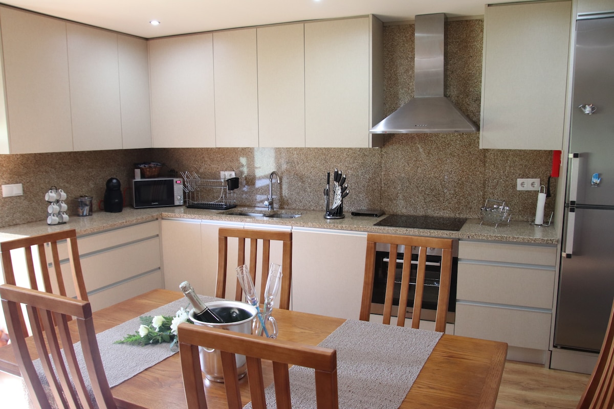 Casa con estilo de tres plantas en Monçao- Portugal, Salvaterra de Miño -España, cruzas el Río Miño. Cuenta con todas las comodidades, comunidad especialmente cuidadosa con niños, paseo en Bicicleta de 15 km hasta Valença do Minho y con un puente internacional que conecta el norte de Portugal con Galicia. Sean Bienvenidos-as. No admite mascotas
