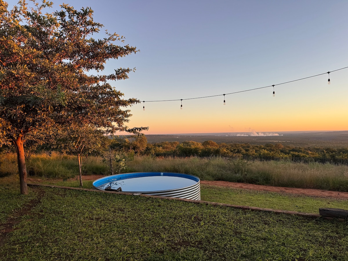 Obs - Car included in the price. A home nestled between African villages, offering a once-in-a-lifetime view of the spray from Victoria Falls. The space has everything you need, inviting you to relax and take in the beauty of Africa. Start your day with a sunrise workout in the private gym, followed by a refreshing swim in the pool—or even a dip in the ice bath. Prepare breakfast in the fully equipped kitchen and enjoy it with the spectacular view before heading out for the day’s adventures.
