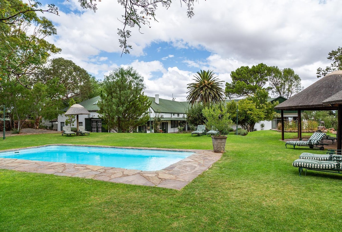 Vuelve a conectar con la naturaleza con esta escapada inolvidable con vistas impresionantes y hermosos paisajes de Karoo. La casa está situada en un oasis tranquilo en una granja en funcionamiento con paseos panorámicos o paseos en bicicleta a través de exuberantes tierras de alfalfa; ¡incluso puedes ver un kudú! Ofrecemos alojamiento cómodo, lujoso y limpio, y un servicio cálido, amable y acogedor. Aunque la casa es independiente, el Whistling Bridge Cafe está abierto de 7:00 a 16:00 horas y ofrece deliciosas opciones de desayuno y almuerzo.