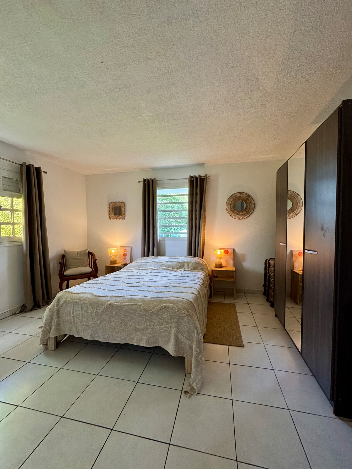 Disfrute en familia de este alojamiento que ofrece buenos momentos en perspectiva. Muy soleado,amplio,acogedor dormitorio climatizado con cama 140 y un sofá convertible de 160 en el salón. Modulable, solicite una cuna para bebé y una cama supletoria. Cerca de servicios, baño termal caliente a 300 metros, a unos 5 minutos a pie. Playa de Malendure a 8' para actividades náuticas. Panadería, autoservicio, iglesia y gasolinera. El mercado está a 2' con Eva, Line y Flo.