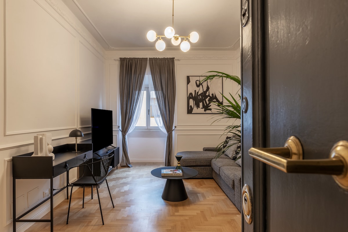 Amplio apartamento en el corazón de Roma, recién reformado, con más de 100 metros cuadrados de espacio. Presenta un diseño moderno y elegante, creando el ambiente perfecto para quienes buscan una experiencia de alto nivel. En el interior, encontrarás todas las comodidades necesarias, como aire acondicionado y wifi rápido. Su céntrica ubicación permite llegar a los puntos de interés y a las estaciones de metro cómodamente a pie. El apartamento se encuentra en un edificio histórico con ascensor.