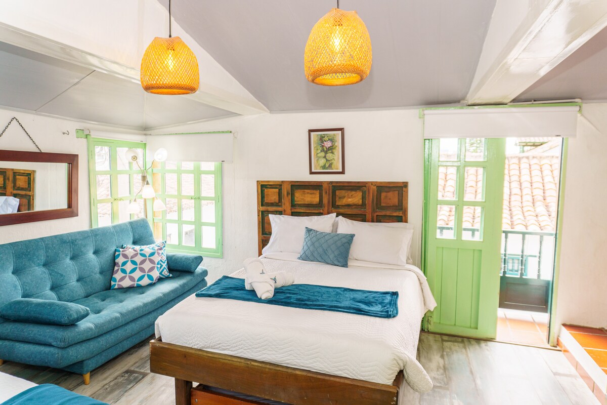 Este es el lugar perfecto para tener una experiencia de primera mano en el pueblito mas hermoso Colombia. Un lugar para disfrutar de la tranquilidad en el barrio más exclusivo del pueblo pero tan cerca de todo el comercio que villa tiene para ofrecer. Queda ubicado en un area tranquila a solo 5 minutos a pie de la plaza principal. Esta totalmente dotada con lo necesario para descansar, cocinar y compartir en familia o amigos. Cuenta con wifi, chimenea y parqueadero privado para 2 carros