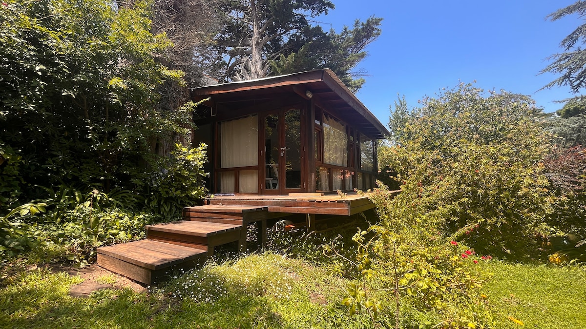 Pequeña y luminosa cabaña inmersa en el bosque. Un lugar ideal para parejas y una alternativa para personas solas que quieran descansar en silencio y despertar con el canto de los pájaros en un ambiente agreste y tranquilo. Cochera privada, tv, Wifi, alarma. Zona de parrilla exclusiva para huéspedes. Barrio residencial y familiar, alejada del bullicio de la temporada. Nos encontramos a 10 calles de la playa y a 15 del centro comercial. ATENCION: NO ACEPTAMOS CUATRICICLOS NI MOTOS.