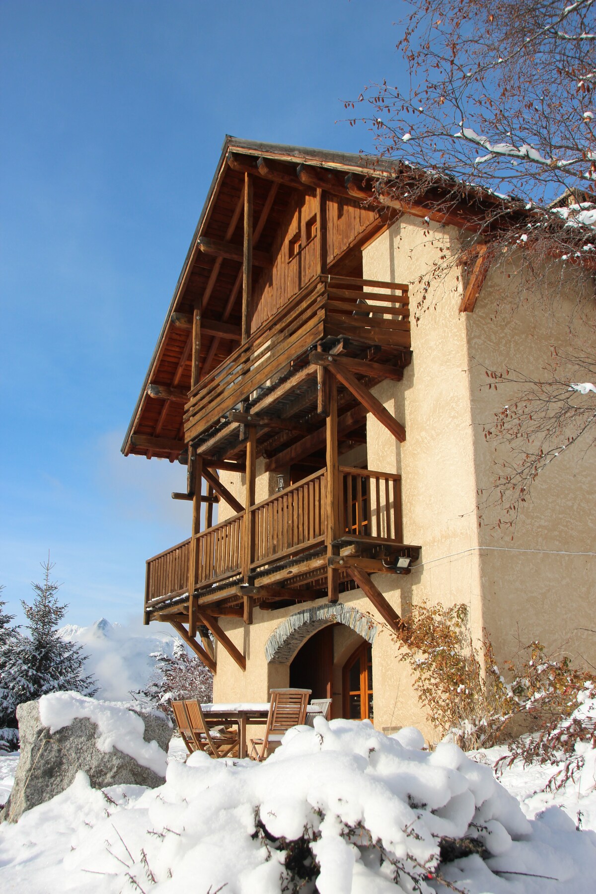Domaine Alpe d 'Huez - Villard Reculas - a 250 m de las pistas de esquí y ESF- ubicación ideal. Espléndido chalet "Le Villarais"de 250 m2 con sauna,billar y 6 habitaciones grandes, Wifi (fibra). 14 per, muy gran espacio para vivir. Con una vista impresionante de las montañas, grandes balcones orientados al sur, jardín-terraza orientado al sur, una fuente de agua fría para sumergirse ( fotos) . ¡El ambiente de la cabaña es único! Ropa de cama, toalla de baño,chalet totalmente equipado. Wifi (fibra) ideal para el teletrabajo.