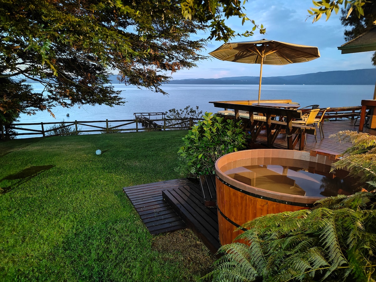 ¡Refugio perfecto frente al lago! Acogedora cabaña con impresionantes vistas y acceso directo al lago, ideal para 13 personas cómodamente. Siéntete parte de la naturaleza, con las impresionantes vistas del volcán desde nuestros kayaks, para luego relajarte en el jacuzzi exterior, o finalizar el día en la sala de cine. Ubicación estratégica a minutos de Villarrica y Pucón. Un espacio único para crear recuerdos inolvidables con familiares y amigos en un entorno natural privilegiado.