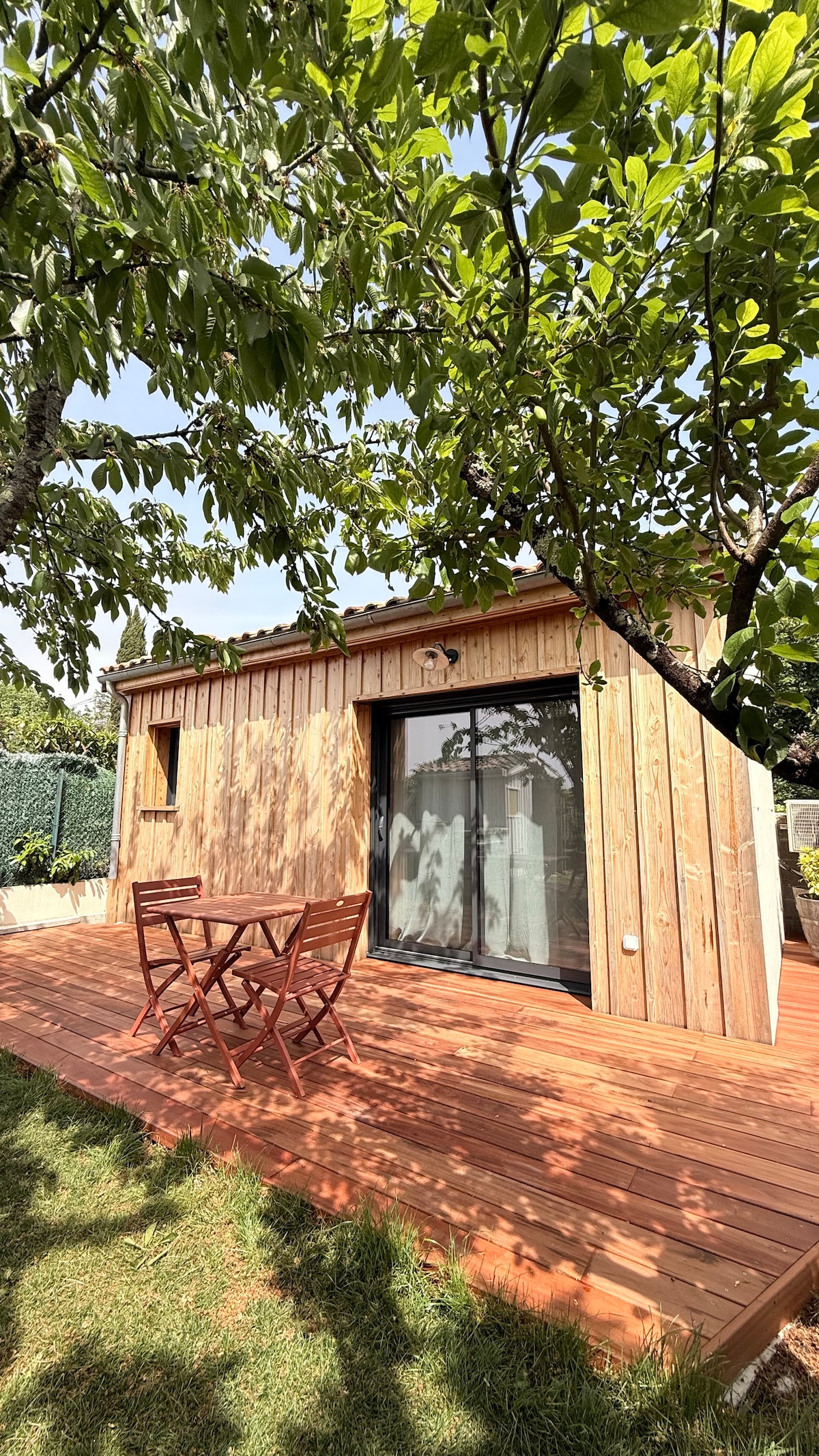 ¡Perfecto! Aquí está la versión en inglés del anuncio, optimizada para una plataforma como Airbnb: --- Siéntete como en casa en esta pequeña casa tranquila, a pocos pasos de todos los servicios. A solo 5 minutos en auto de Burdeos y a 2 minutos del transporte público. Ubicada en un vecindario tranquilo, la casa incluye: 1 dormitorio 1 entrepiso con una cama tamaño queen (160 cm) 1 sofá cama Ideal para 2 a 4 huéspedes, tiene capacidad para 6. Jardín privado, perfecto para relajarse.