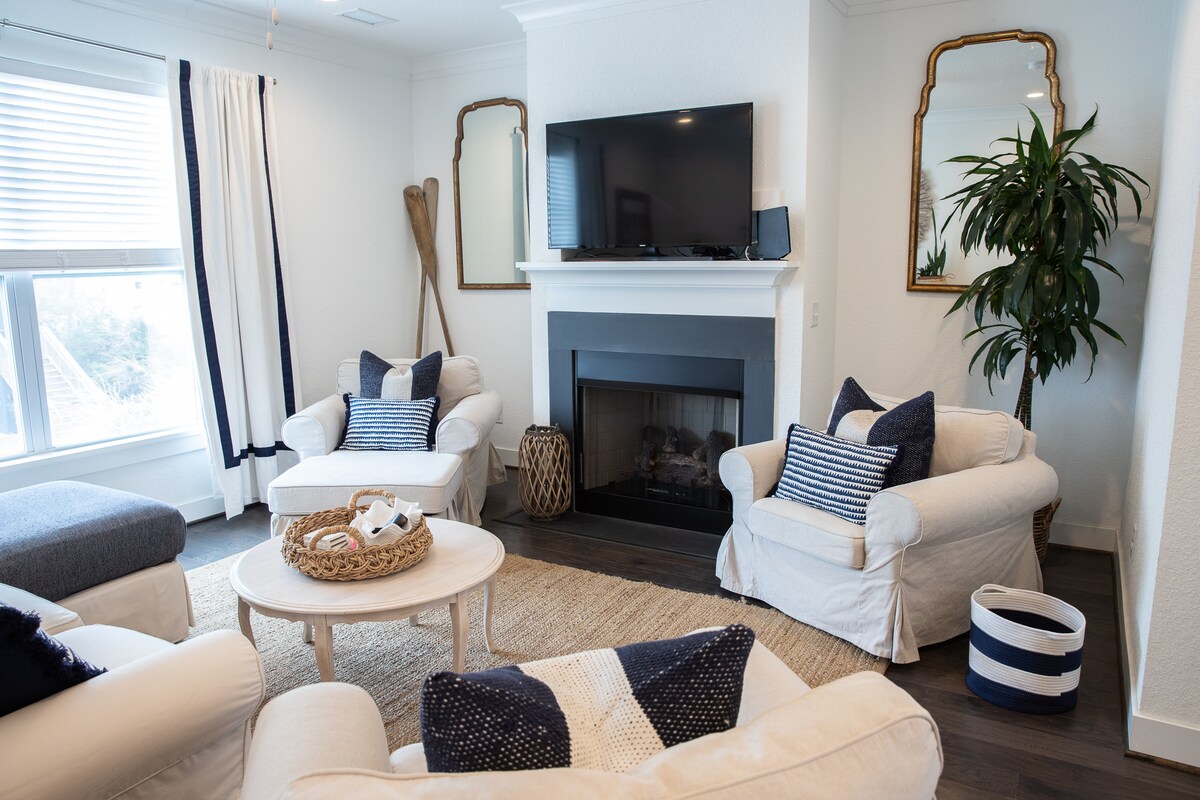 Una granja tranquila y de diseño a pocos minutos de Cape Charles, donde la diversión vintage se encuentra con la comodidad de un hogar inteligente. Disfruta de una sala de juegos privada, gimnasio Peloton, cargador EV, atardeceres en el fogón y sonido Spotify en toda la casa. A los huéspedes les encanta la colección de vinilos, la cocina del chef y las vistas a la reserva de Magothy Bay. Relájate bajo cielos abiertos junto al fogón o comienza el día en los senderos de Magothy Bay.