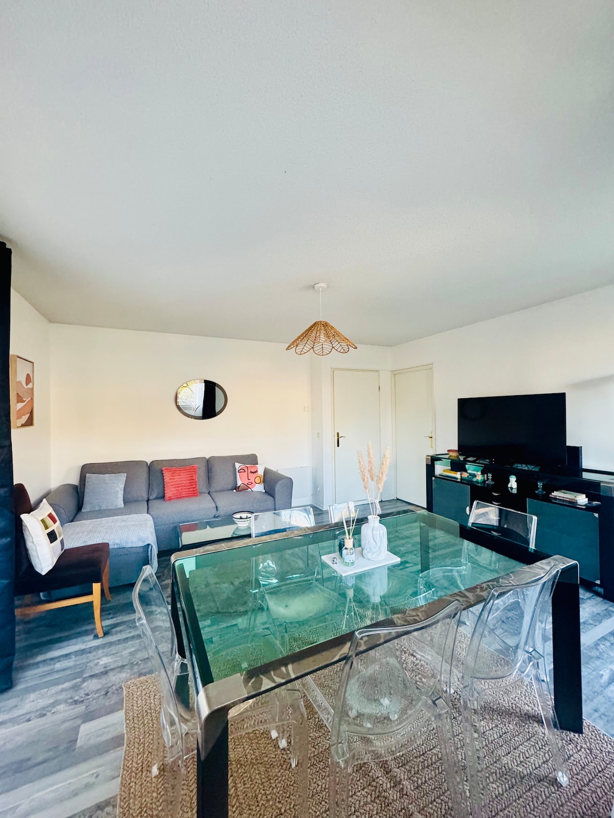 Appartement cosy et moderne rénové en 2024, dans un quartier calme et sécurisé de Vitry-sur-Seine. Profitez d’un joli jardin avec pergola et salons pour des moments conviviaux. Accès rapide à Paris : RER C à 7 min à pied (Tour Eiffel en 30 min). Cuisine équipée, Wi-Fi haut débit, TV connectée avec Netflix, linge de lit, serviettes et articles de toilette fournis. Stationnement gratuit et facile dans la rue. Idéal pour un séjour touristique ou professionnel alliant confort et détente.