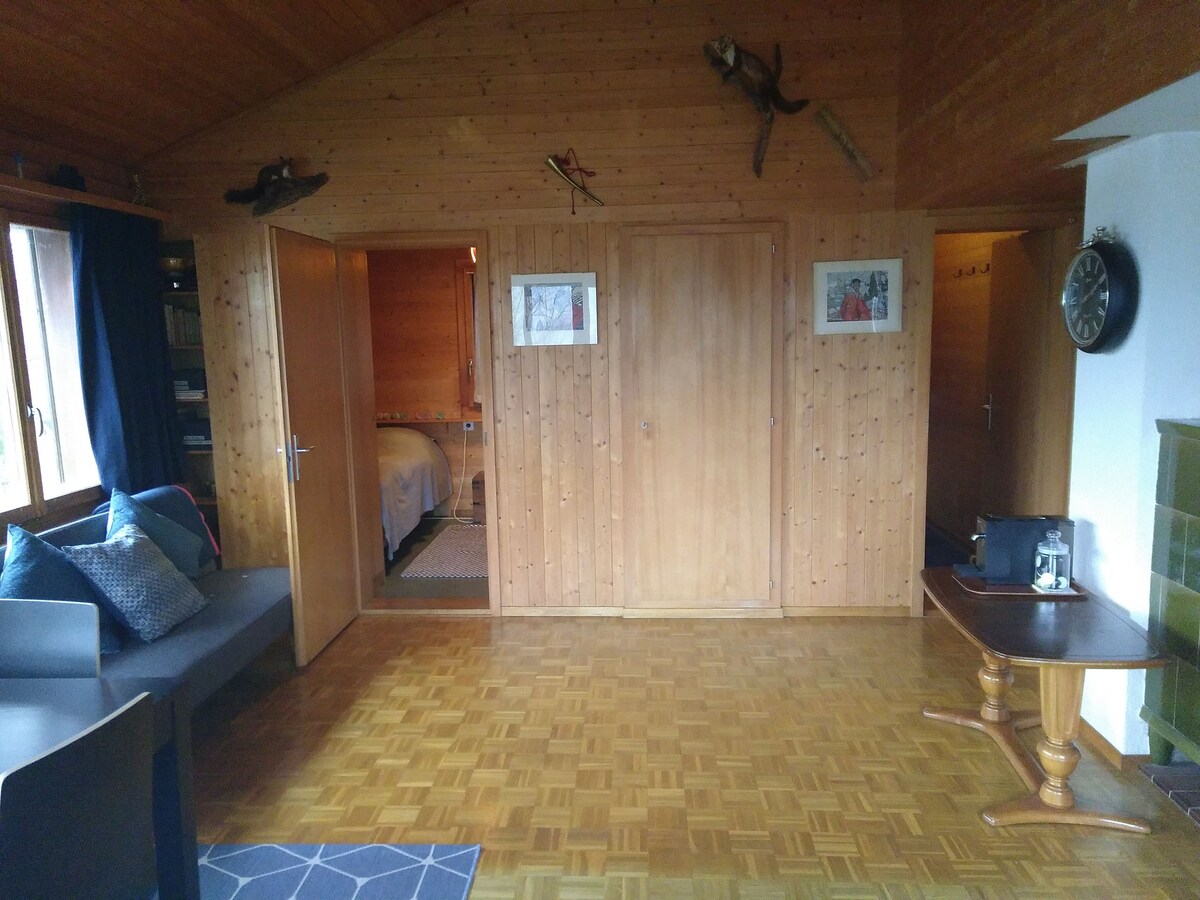 Lee atentamente el anuncio antes de la solicitud de reservación (Otras notas importantes). ¡Te damos la bienvenida a nuestro estudio en Chalet am Sihlsee! Perfecto para dos, máximo tres personas. La propiedad ofrece una cama doble y un sofá cama en la misma habitación. La pequeña cocina pequeña hace posible preparar comidas sencillas. El estudio tiene un amplio baño con inodoro y ducha. Hay un estacionamiento disponible para nuestros huéspedes.