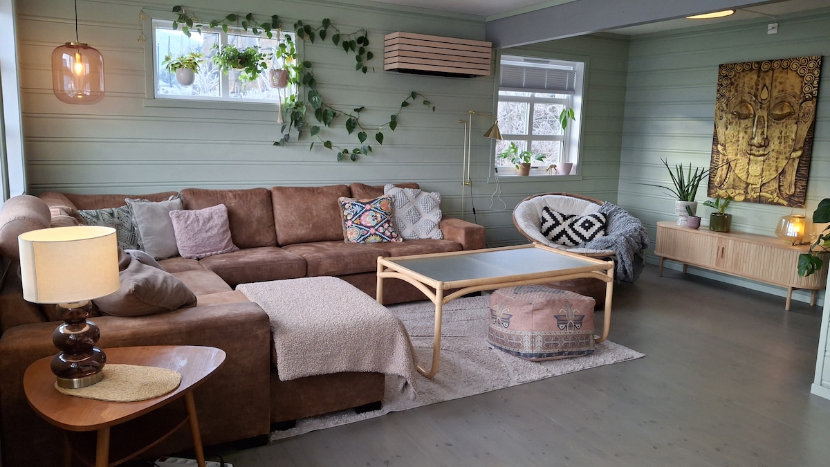 ¡Un hogar acogedor lejos de casa con impresionantes vistas a la ciudad de Voss! Somos un alojamiento para no fumadores en Airbnb. 🚭 Situado en una subida gradual a pie, a unos 1 km de la estación de autobuses/tren/telecabina del centro de la ciudad. Estacionamiento para 1 coche incluido. Entrada privada. A 3 km de la estación de esquí de Voss y a 30 minutos en coche de la estación de esquí de Myrkdalen, apartamento de 3 dormitorios totalmente amueblado con cocina/baño y lavandería. Se proporcionan sábanas y toallas. Solo tienes que traerte a ti y a tus suministros de comida.