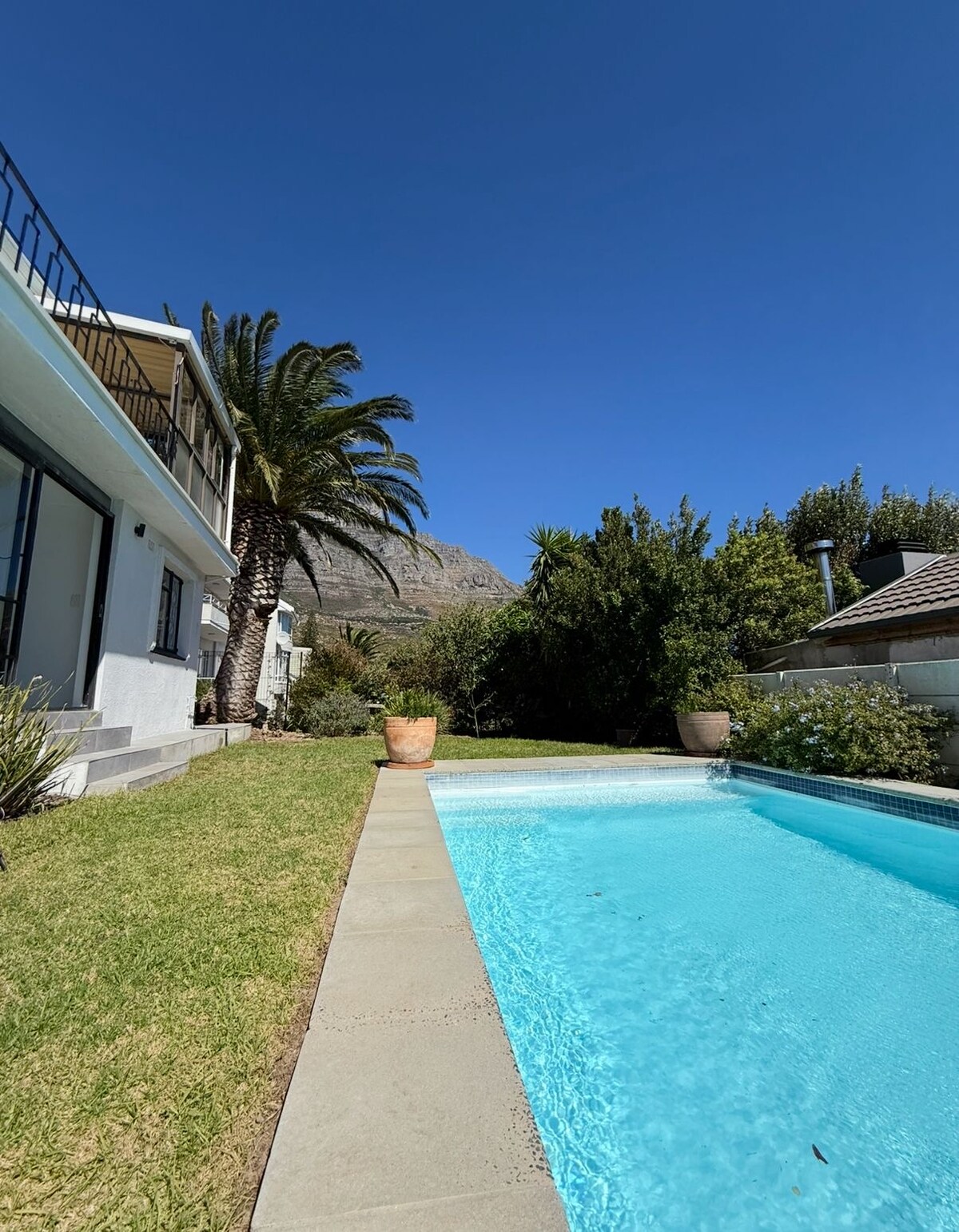 Este apartamento recién reformado tiene capacidad para 2 adultos + 1 niño y se encuentra a los pies de la montaña de la Mesa, ofreciendo preciosas vistas de la cercana Cabeza de León y la montaña de la Mesa. Aunque está unido a la casa principal, el antiguo estudio de arte es completamente privado, con el dormitorio en suite que conduce a una amplia terraza, cocina americana equipada y sala de estar de planta abierta. El sofá es lo suficientemente grande como para que duerma una tercera persona. Situada a 10 minutos en coche del centro de la ciudad y a 15 minutos de Clifton Beach, esta casa de vacaciones tiene todo lo que necesitas.
