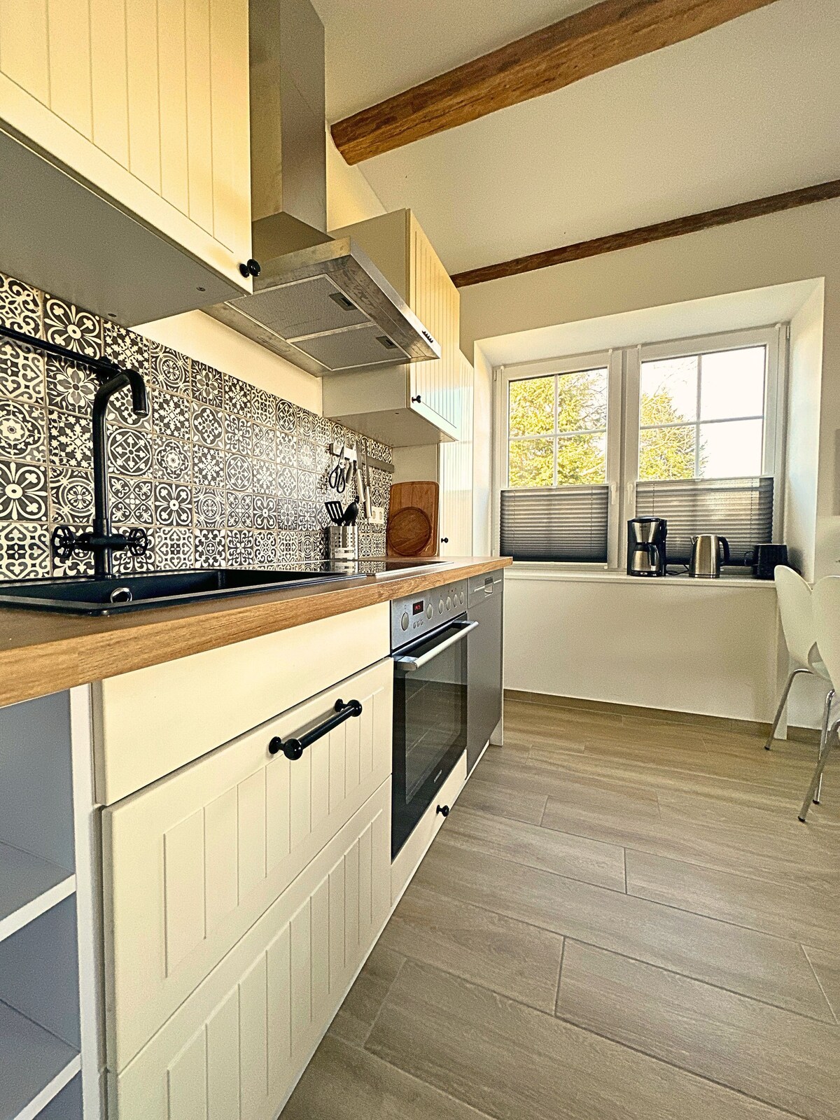 The attic of this beautiful Gründerzeit house opens on both sides. Facing west with a breathtaking view over the harbour and the old town of Flensburg. To the east into the tranquil captain’s district and to St. Jürgen. Two balconies offer sunny places at any time of the day, inside you can expect stylishly renovated rooms, fireplace, a black designer kitchen...