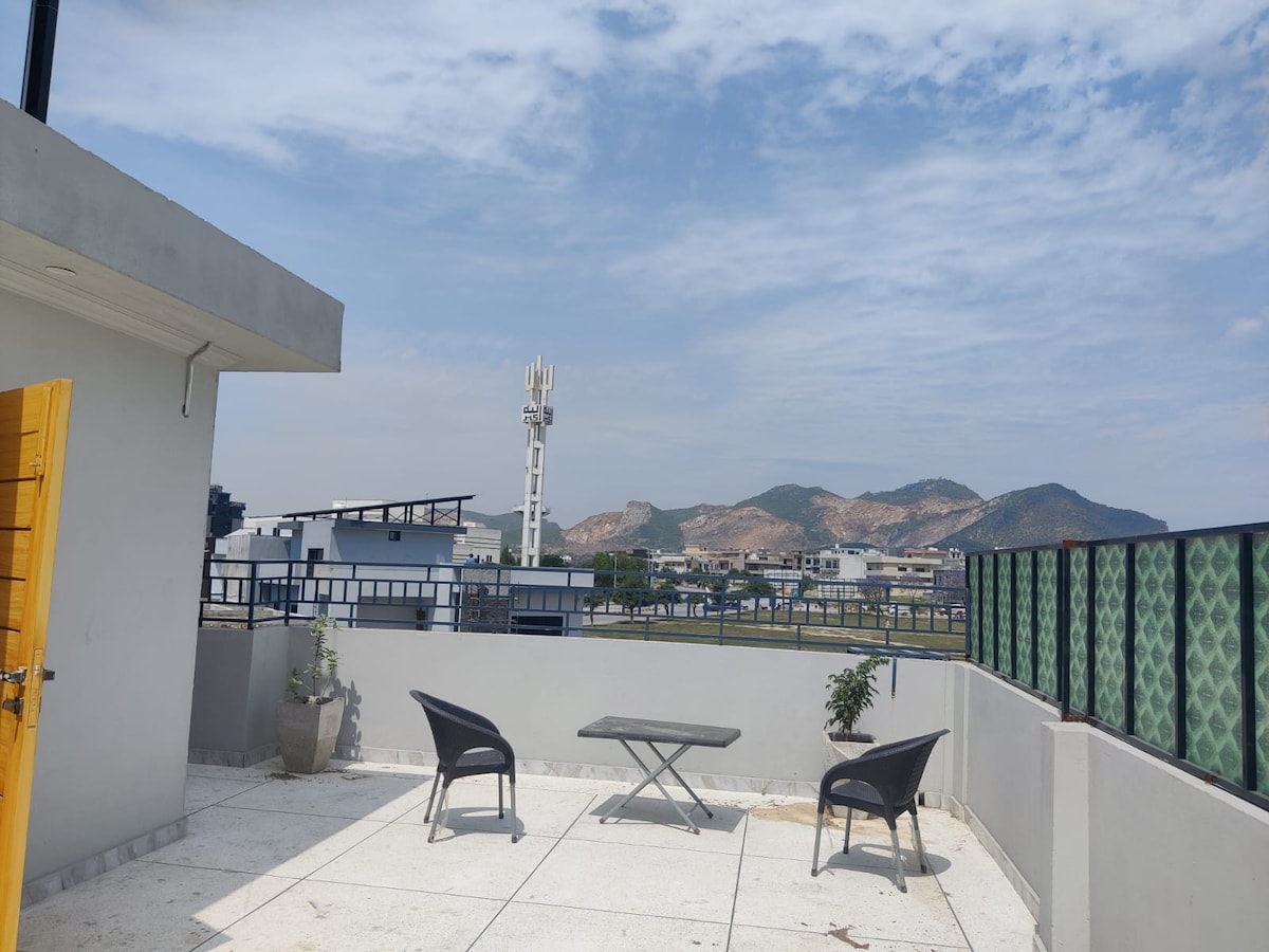 Casa espaciosa, moderna, elegante y de nueva construcción 2 dormitorios, 3 baños, cocina, lavandería, sala de estar, etc. Perfecto para parejas, familias o incluso profesionales de negocios, que ofrece todo lo que necesitas para una estancia relajante, memorable y agradable. A solo 10 minutos del Aeropuerto Internacional de Islamabad. Extremadamente cerca de las autopistas Lahore/Islamabad/Peshawar. Ya sea que estés explorando las maravillas de las Áreas del Norte o necesitando una escala relajante antes de tu próximo vuelo, te encantará.