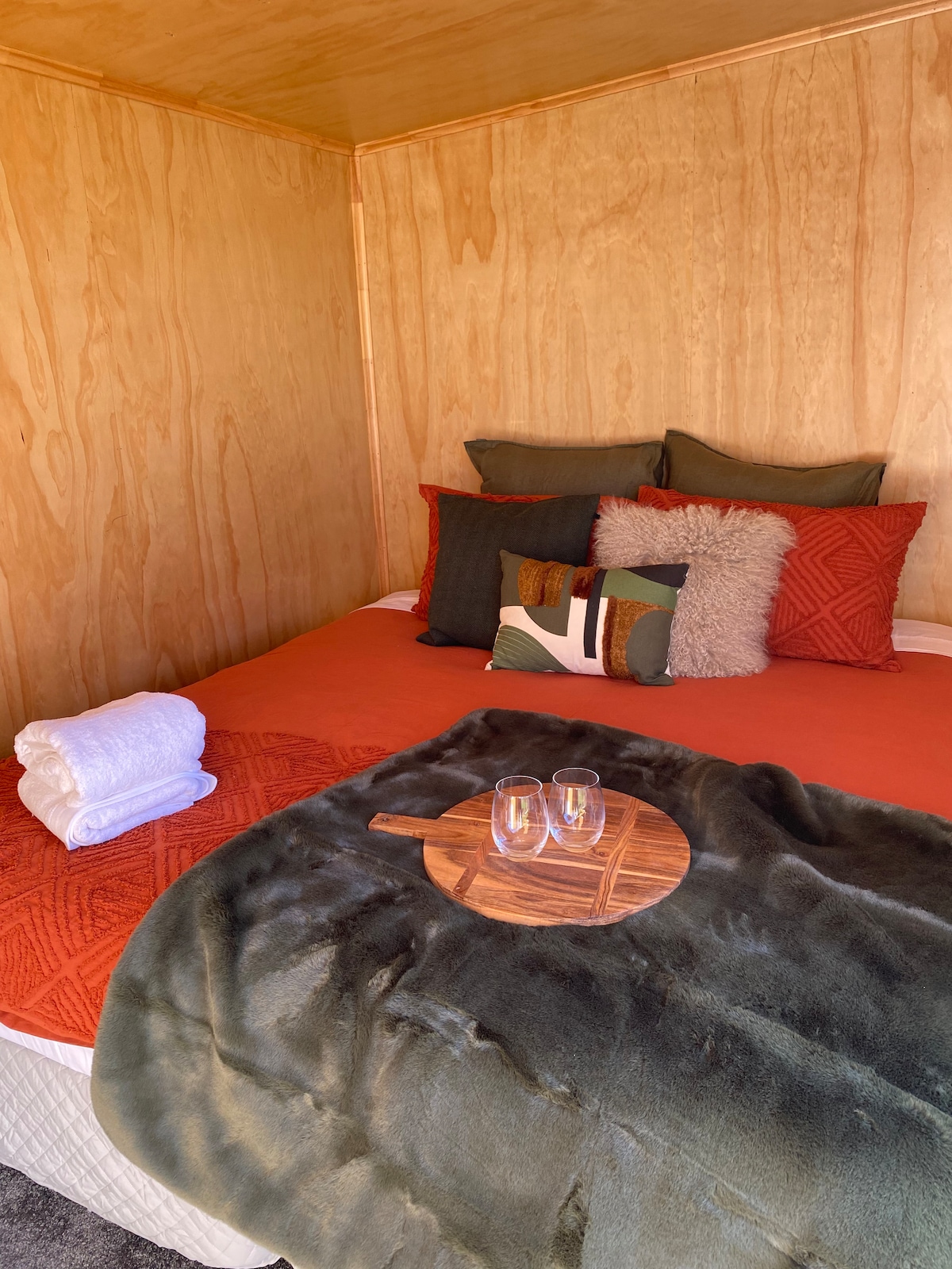 Cabina independiente privada con baño en un entorno de jardín. Recién construido con el más alto nivel, ubicado en el área de Hilltop. A 5 minutos a pie de la playa del lago Taupo. A 20 minutos a pie del CBD. Restaurante/bar local, productos lácteos y comida para llevar (5 minutos a pie). Ofrecemos una cabina segura y totalmente aislada, con capacidad para dos personas (no es apto para niños menores de 8 años). Base central para experimentar la maravillosa zona turística y de eventos del lago. Los huéspedes estarán cómodos en las camas de primera línea y se incluye un desayuno continental.