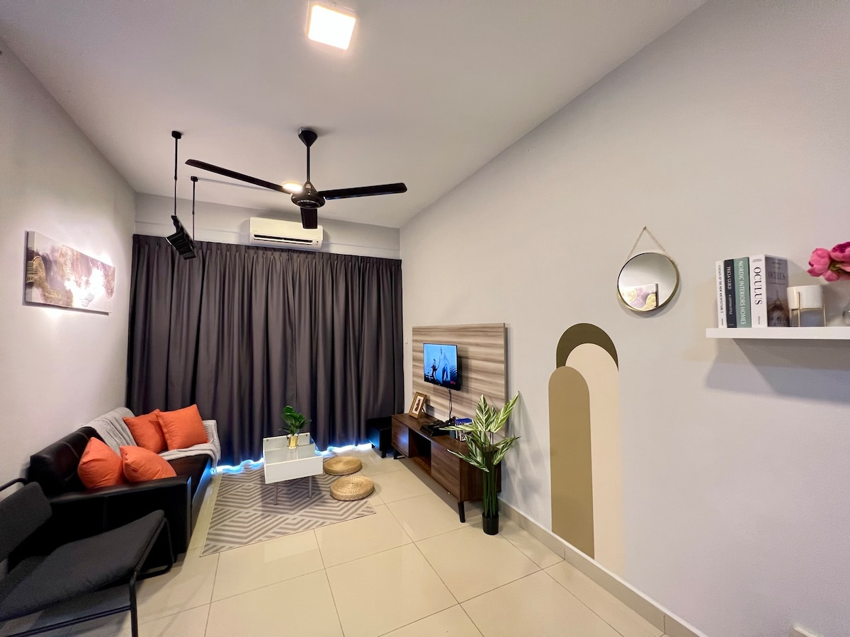 Stay in the heart of Kota Bharu and enjoy ultimate convenience. Located just a short walk to KB Mall and UTC, you can shop, dine, and access essentials without needing a car. Surrounded by plenty of food options. This fully furnished, air-conditioned unit features a queen bed, sofa bed, 43” Smart TV, washing machine, fridge, iron, balcony, and 100Mbps high-speed fibre internet—perfect for work or staycation.