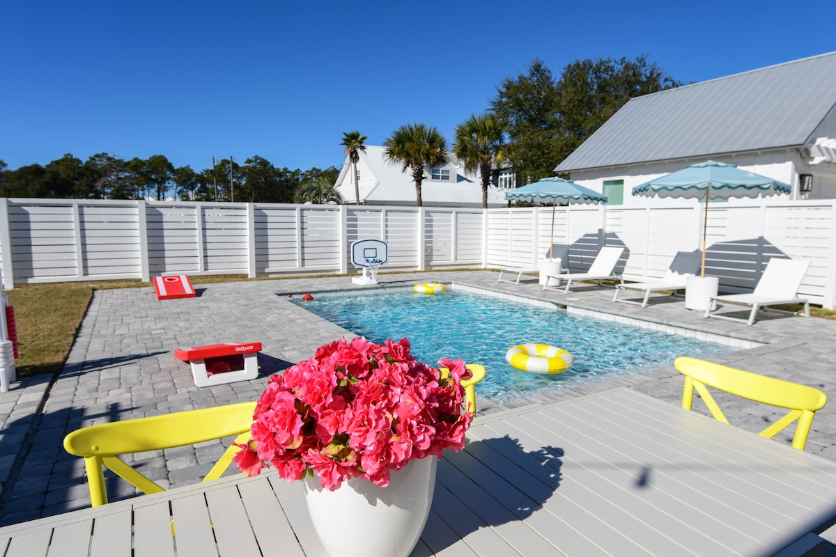 Joya soleada de 30A con loft, piscina y acceso a la playa
