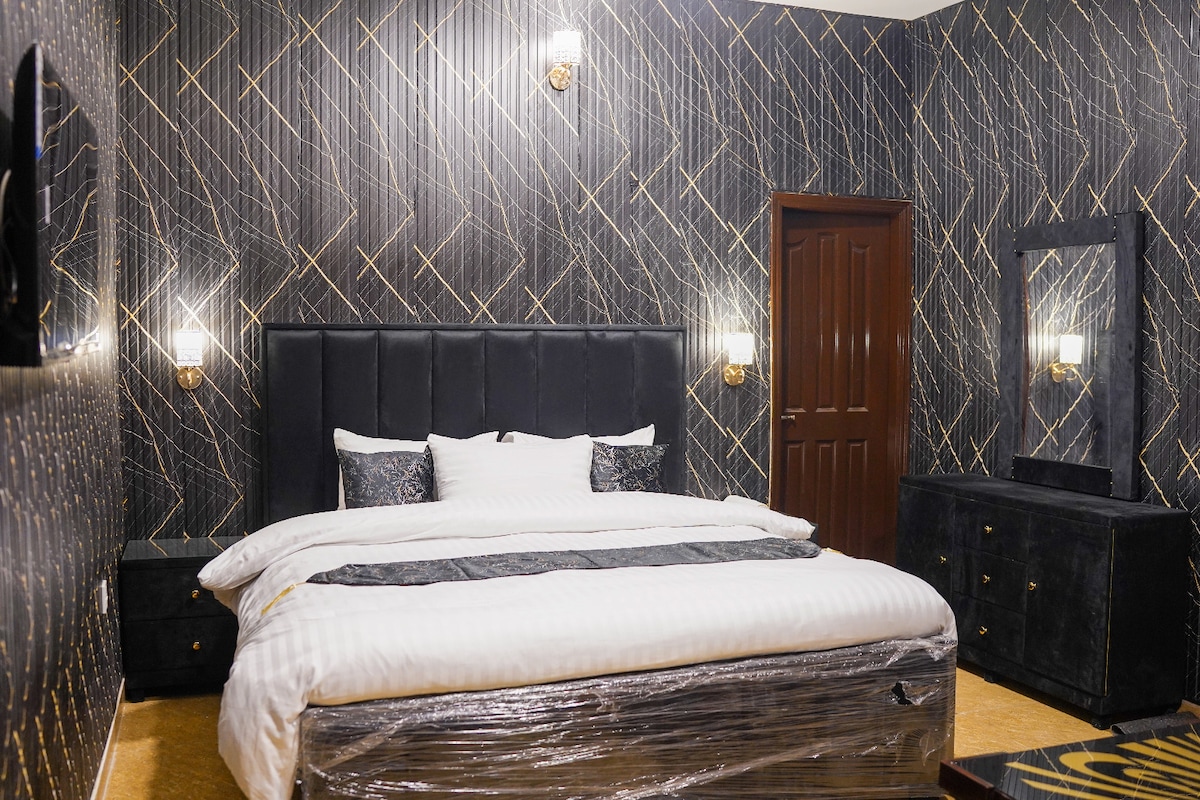Bienvenido a mi lujosa suite ubicada en RESIDENCIAS DE LUJO OYSTER COURT, uno de los edificios más lujosos de lahore en la zona más concurrida de Gulberg 2 justo al lado de MM Road a pie donde encontrarás comodidades de lujo. ¡Apenas 2 minutos en auto de todos los restaurantes famosos y marcas y centros comerciales ! A 10 a 13 km del aeropuerto internacional. Puedes disfrutar de una cafetería de primera clase en el edificio y también puedes disfrutar de la piscina de jacuzzi y jym con tu familia :)