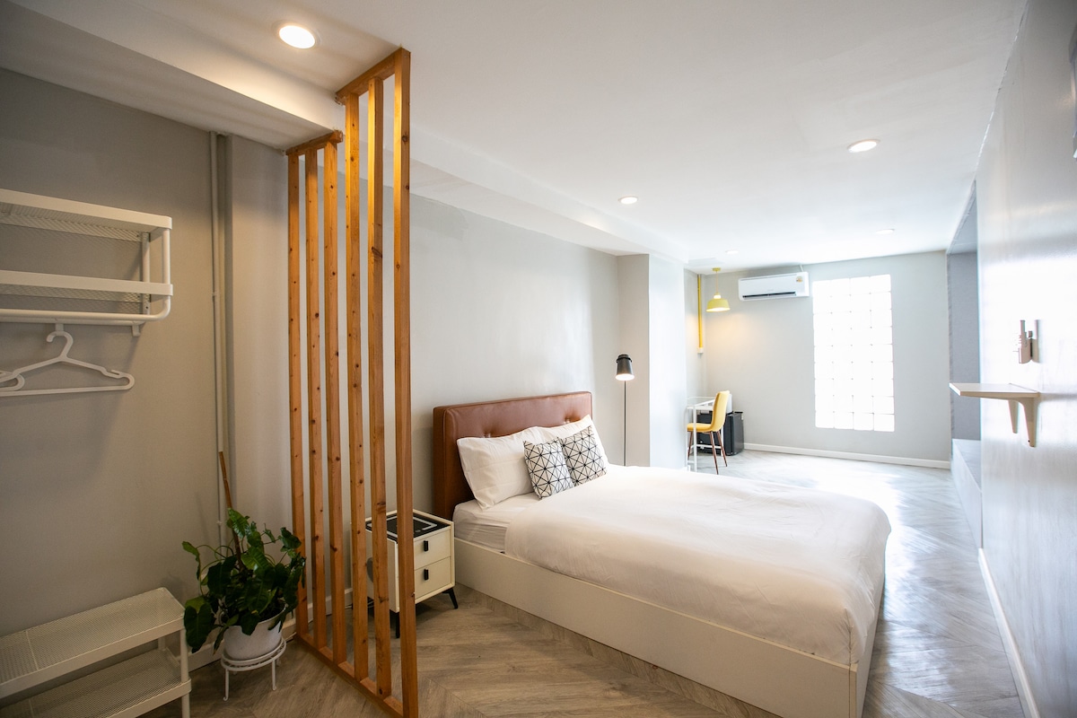 The Ultimate Work-Rest Balance, Experience a Cozy designed for Digital Nomads. Transition seamlessly from work to relaxation and truly unwind in your peaceful sanctuary. ทิ้งตัวลงนอนด้วยความผ่อนคลาย ในพื้นที่ที่ออกแบบมาเพื่อการพักพักผ่อนอย่างแท้จริง Siri Space พร้อมต้อนรับคุณสู่ประสบการณ์การเข้าพักรูปแบบใหม่ย่านประตูน้ำพระอินทร์ ที่ผสมผสานความอบอุ่นสไตล์ Cozy ที่มีมาตรฐาน