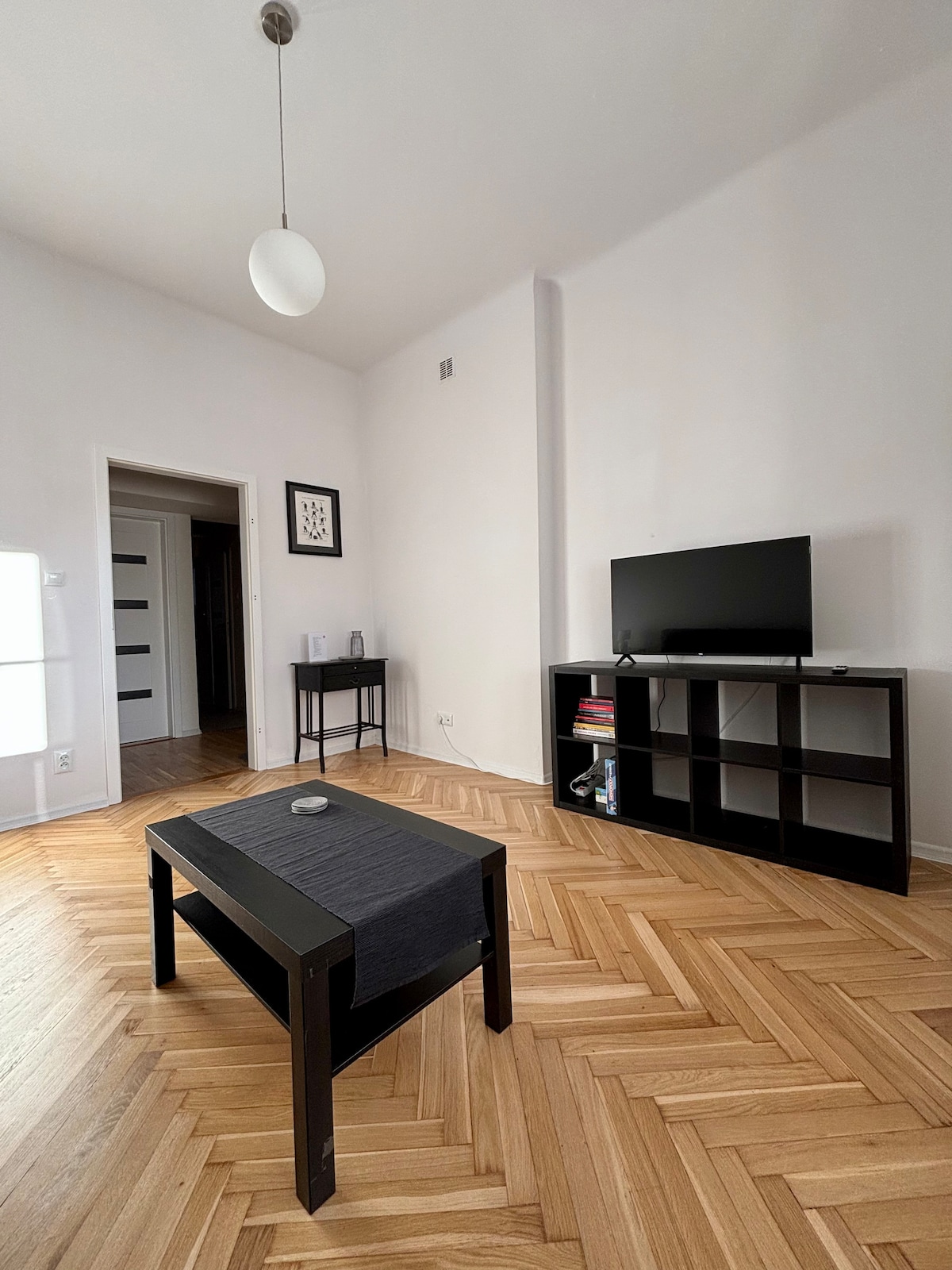 Spacious apartment of over 60 m2 located at Lwowska Street 10 in the very heart of Warsaw with great vibe. 2 minutes to Hala Koszyki, Plac Zbawiciela or Plac Konsytucji. The apartment consists or living room, bedroom, bathroom with shower and kitchen. The kitchen is fully equipped with fridge with freezer, oven, washing machine, stove, espresso machine, kettle and utensils. In the kitchen there’s also washer-dryer - especially useful for longer stays. Self check-in allows flexibility.