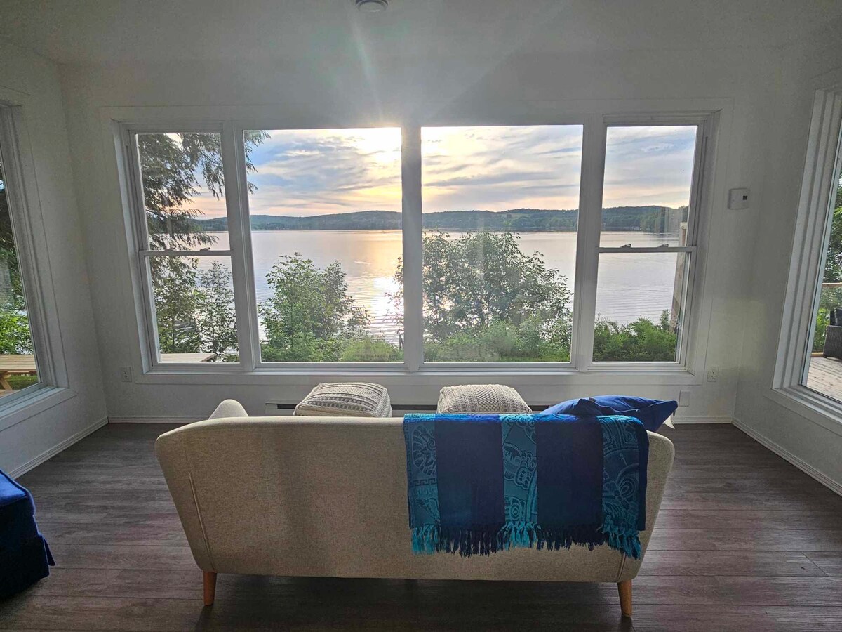 Una lujosa cúpula en plena naturaleza, en el corazón de los Cantons-de-l'Est Disfrute con total intimidad de unas vistas espectaculares del Parque Nacional del Monte Orford, sus montañas y sus bosques. Spa privado en terraza privada, cocina completa, chimenea moderna, suelo radiante, aire acondicionado silencioso, baño de alta gama con ducha italiana, estacionamiento privado frente a la cúpula, senderos privados de 2 km en 40 acres. Lagos, montañas, bosques, viñedos, playas, todo está ahí. N.º de registro: 627901