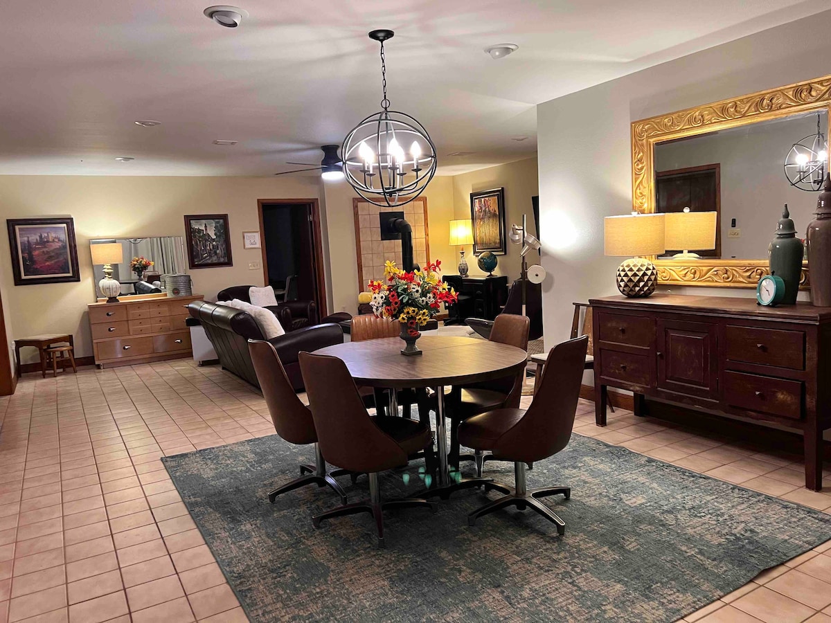 ¡5 acres! ¡Un hogar lejos de casa! ¡Oasis apto para perros! Retiro de nivel inferior: aproximadamente 2500 pies cuadrados. 3 dormitorios acogedores, 2 baños, sala de estar, comedor, cocina completa y lavandería. Entrada privada. ¡Nivel inferior de la casa de tres pisos! Disfruta de nuestra piscina cristalina (mediados de mayo-septiembre). Gazebo, diversión al aire libre que incluye pickleball, estanque de pesca (captura y liberación). Off-Leash Dog Haven. Comodidades compartidas al aire libre. Internet de alta velocidad 1 Gig No hay estacionamiento para remolques o equipos pesados. Una de las dos unidades STR en el sitio y 2 mascotas como máximo
