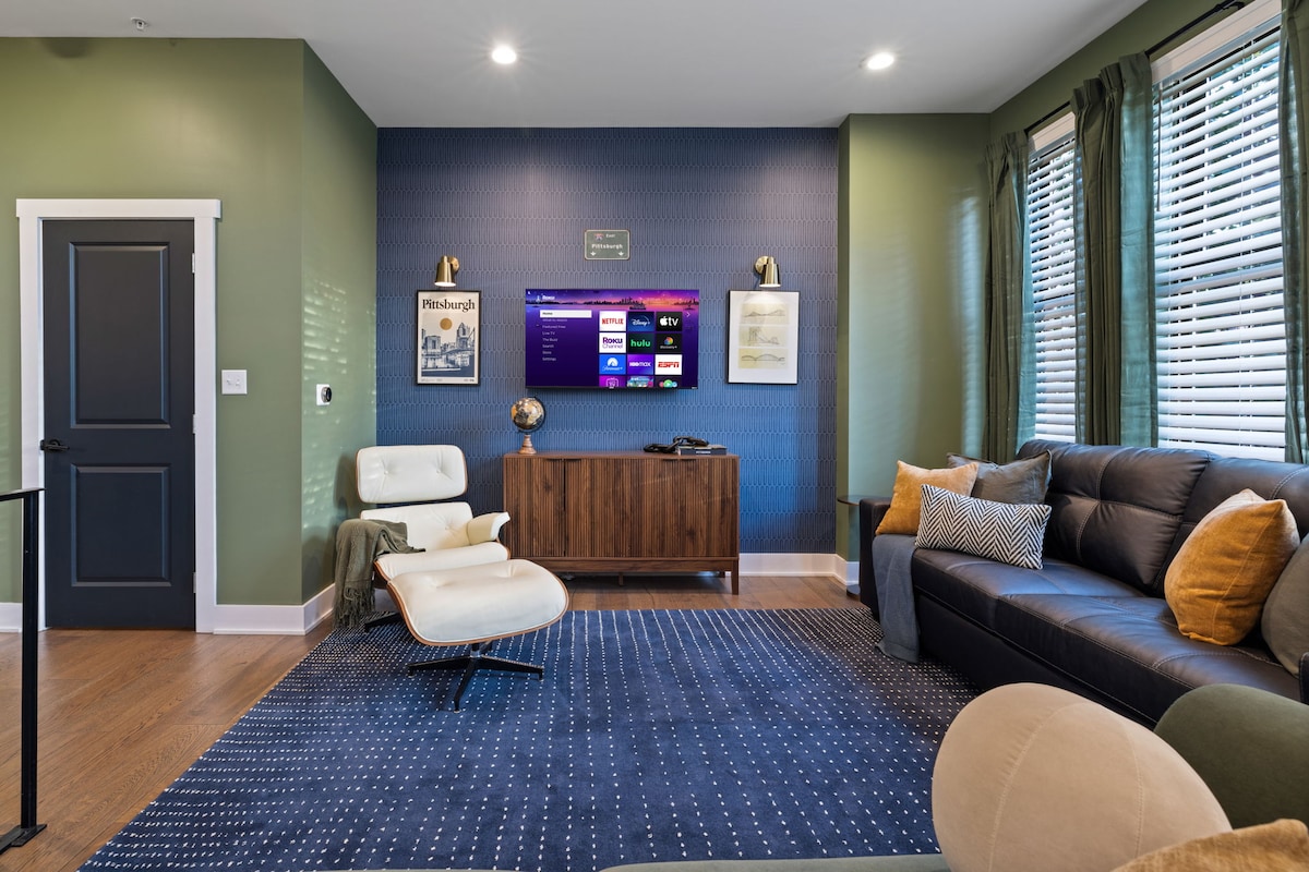 ¡Bienvenido a Yinz City Stay, la mejor escapada a Pittsburgh! Diseñado pensando en los verdaderos amantes de Pittsburgh, esta espaciosa casa de 4 dormitorios te pone justo en el corazón de la acción. Donde estás aquí para animar a los Steelers, Pirates o Penguins, te encantará estar a poca distancia a pie de Acrisure Studium y PNC Park. Impresionante terraza en la azotea con fogata, el lugar perfecto para relajarte y tener una vista de primera fila de los fuegos artificiales del parque PNC iluminando el cielo. 🎇 En el interior, encontrarás comodidades modernas con encanto local.