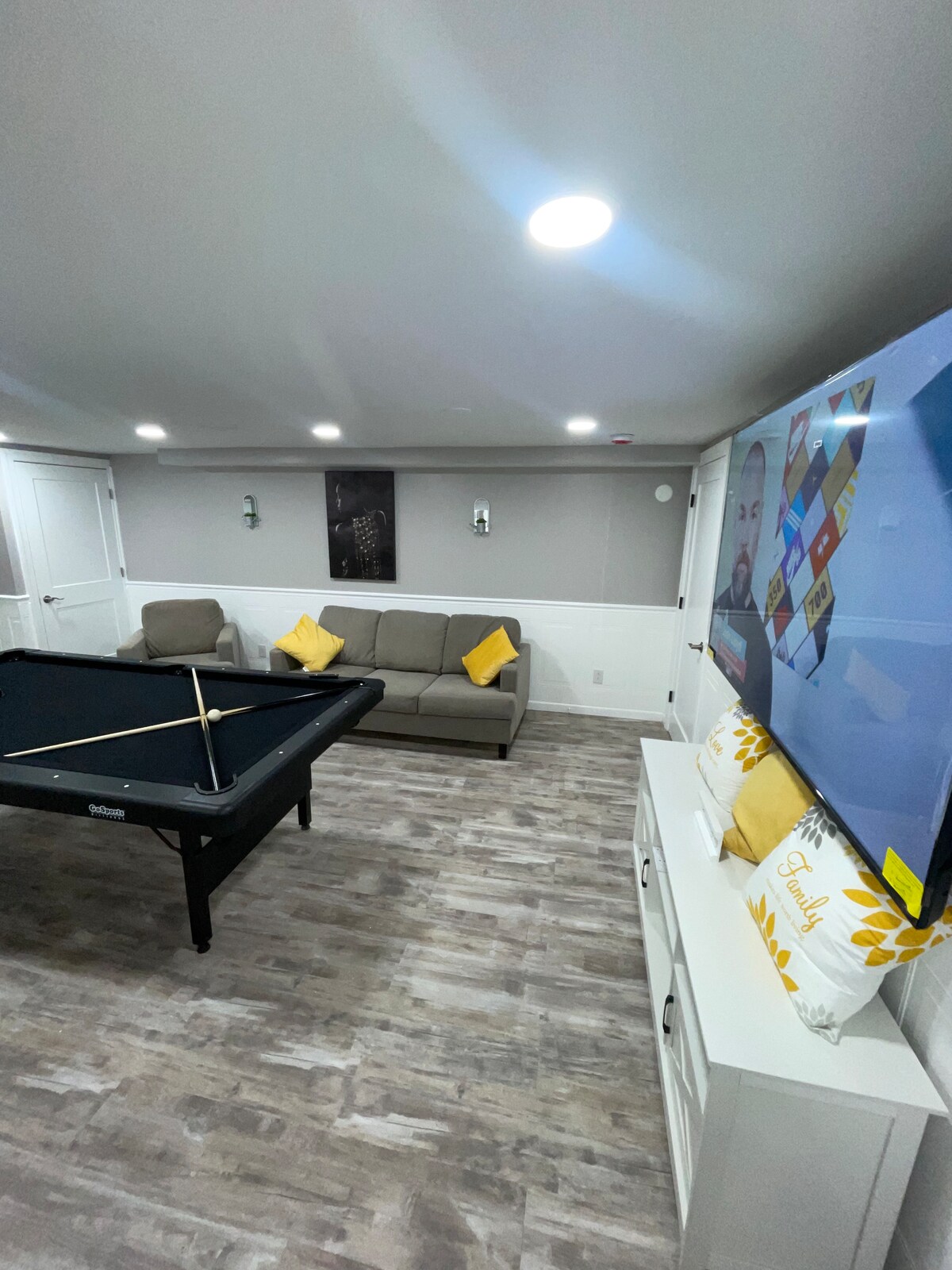 ¡Este alojamiento elegante y espacioso es perfecto para un hogar lejos de casa! ¡Entrada privada! ¡Todo lo que necesitas está aquí! Hay una televisión en el dormitorio y el salón. ¡Hay una mesa de billar si quieres jugar a un juego divertido! Si necesitas espacio para estudiar o hacer algo de trabajo, hay un área de escritorio. La lavadora y secadora personal también están disponibles en el alojamiento. La unidad tiene vecinos arriba, por lo que es posible que escuches ruido/niños de vez en cuando durante el día. No aceptamos consultas sin perfiles completos ni evaluaciones.