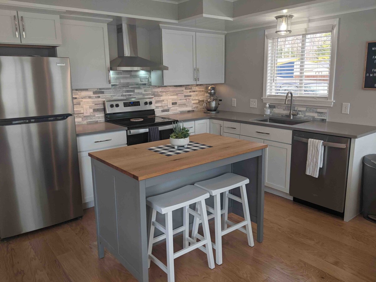 Nuevo apartamento tipo estudio con entrada independiente. Cocina totalmente amueblada, cama tamaño queen nueva, todos los muebles nuevos, incluida la zona de escritorio, wifi, mucho espacio de almacenamiento, nevera nueva, estufa, microondas, TV de 42 pulgadas y lavavajillas. La unidad incluye lavadora y secadora propias y tiene una hermosa vista al lago en frente. Ubicado cerca de cines, bolos, restaurantes, centros comerciales, tiendas de comestibles, gran parque recreativo estatal, esquí y convenientemente cerca de aeropuertos. Baño dentro de la unidad con 2 sillas reclinables.