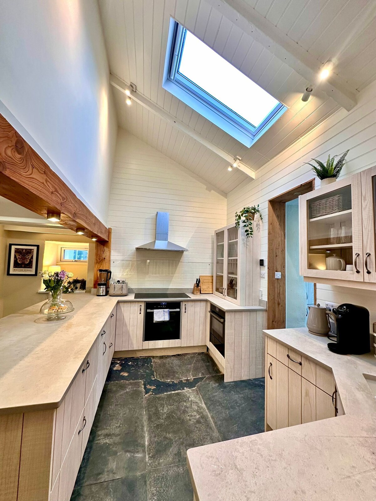 Just 100 metres from the golden sands of Watergate Bay, Waves is a stylish coastal apartment with vaulted ceilings and a relaxed beach-loft vibe. With private parking and lift access, everything is easy from the moment you arrive. Perfect for couples, small families, surfers, and one well-behaved dog — arrive, switch off, and be barefoot on the beach in minutes. Spend your days in the sea or exploring the coast, then walk to beachside restaurants for sunset drinks overlooking the Atlantic. ⸻
