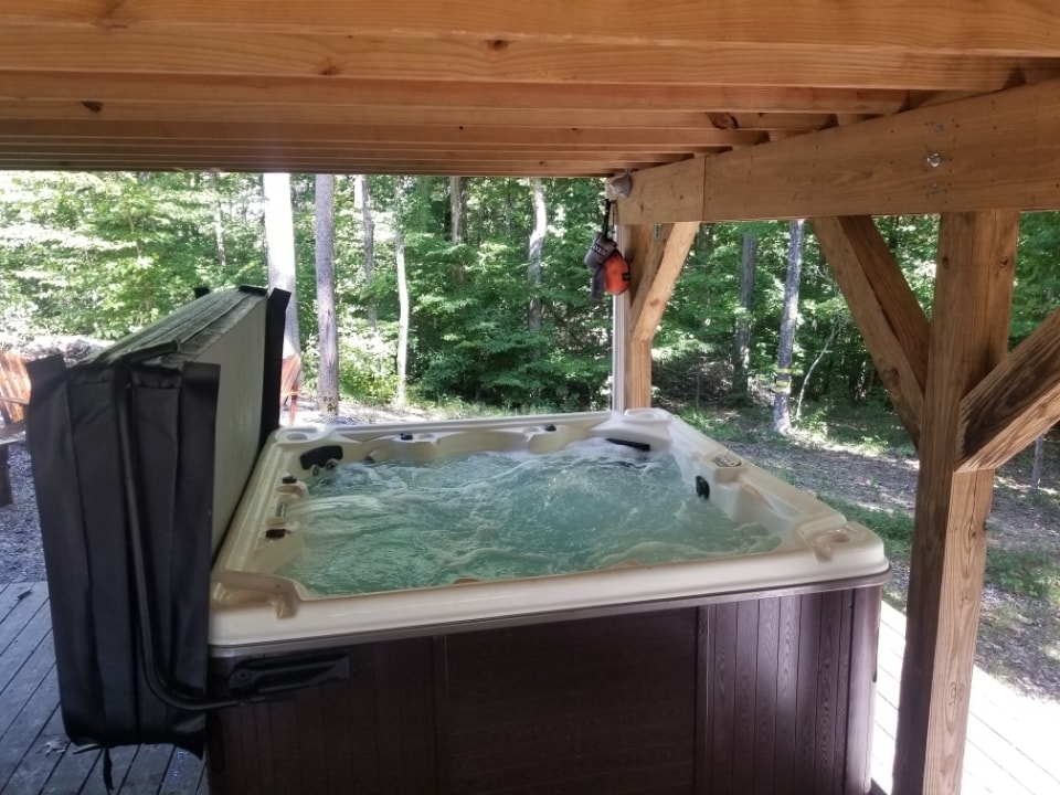 Cabaña de madera flotante con jacuzzi en el lago Cumberland