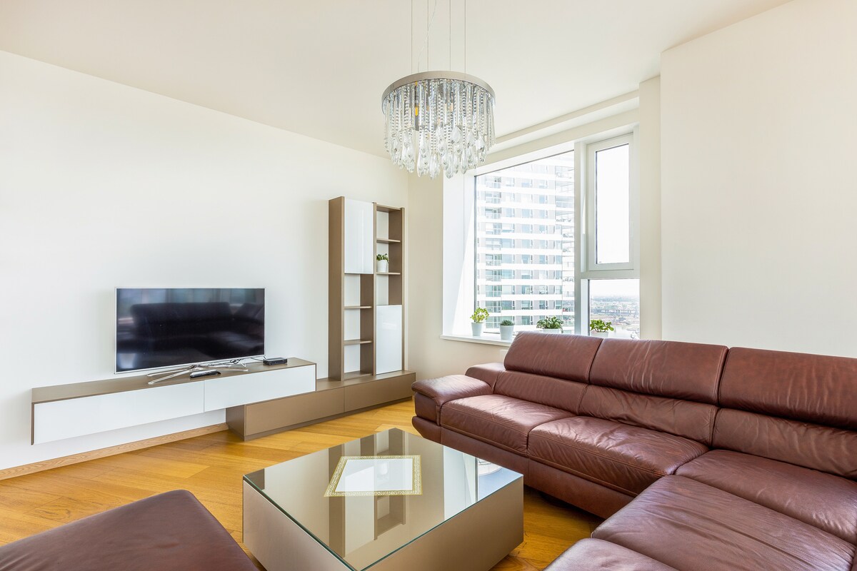Amplio apartamento en el piso 20 con vistas panorámicas de la ciudad. Máxima comodidad, totalmente equipada. Perfecto para viajeros que trabajan. Amplio apartamento en el piso 20 con vistas panorámicas a la ciudad. Máxima comodidad y todas las comodidades. También es adecuado para trabajar.